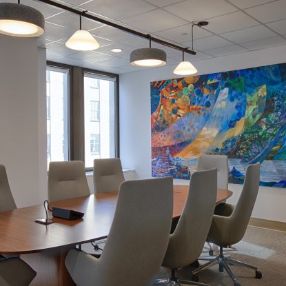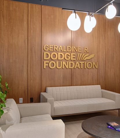 ENV in partnership with AKT Designs provided full architectural and interior design services for the Geraldine R. Dodge Foundation’s Newark headquarters, creating a space that reflects the organization’s values of inclusivity, community, and forward-thinking philanthropy. The foundation, which is dedicated to supporting creative, resilient, and equitable communities—particularly through arts, education, environmental sustainability, and social justice initiatives—required a space that embodies transparency, openness, and warmth.