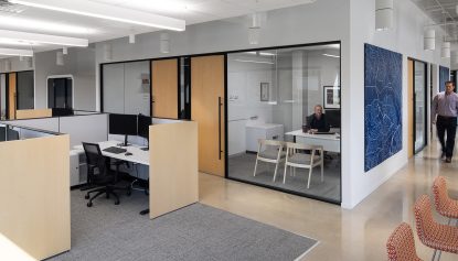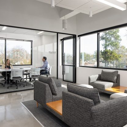 The interior of the HITT Contracting headquarters in Richmond, Virginia, is a sophisticated blend of modern design and functional architecture. It’s a space that not only houses the company’s operations but also embodies its core values of innovation, quality, and craftsmanship.