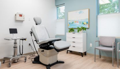 The 2,673 sf tenant improvement project, located in a two-story medical office building, was meticulously designed to optimize patient and staff flow. The final design successfully separates the four well-appointed exam rooms and open nurses’ station from the front-of-house patient experience. The welcoming reception and waiting area utilize a calming palette of muted colors, soft accents, and natural wood tones to immediately put patients at ease, moving away from a traditional, sterile clinical feel.