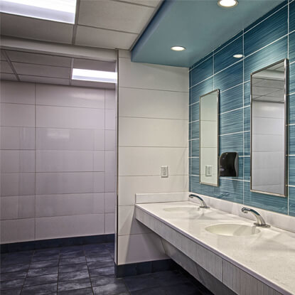 The bathrooms were completely redone to meet ADA requirements and new single stall showers were installed away from the communal shower rooms.